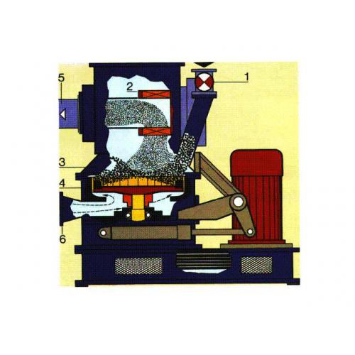 工作原理:物料经加料装置送入粉碎室,在冲击锤及气流的高速冲击下相互碰撞、剪切、磨擦、研磨而被粉碎,粉碎后的物料在上升气流的作用下进入分级室进行分级,合格的细粉穿过分级轮从出料管排出后被集料器收集,不合格的细粉被分级叶轮甩出后回到粉碎室进行重新粉碎。