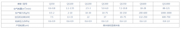 QS系列水平圆盘式气流粉碎机主要技术参数