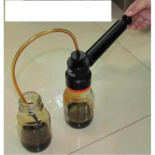 2、250ml油液清洁瓶拧到取样器接头上即可进行抽油作业。一般情况下,软管伸入深度约50mm.这样,可以避免吸进沉积物。