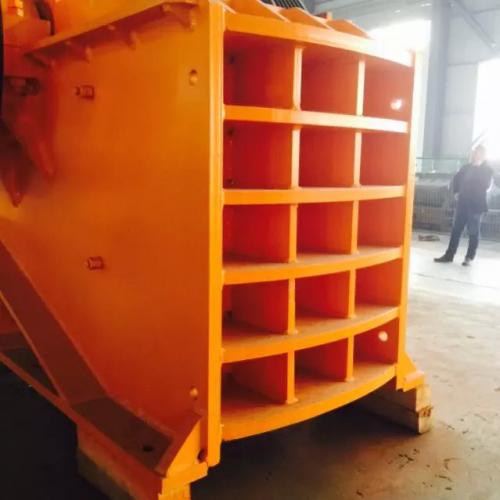 锤式破碎机的机壳由下机体、后上盖、左侧壁和右侧壁组成,通过螺栓将各部分连接为一体。上部开设进料口一个,机壳内壁全部以高锰钢衬板镶嵌,方便衬板磨损后的更换。下机体采用碳素结构钢板焊接而成,为了两侧安放轴承支持转子,特采用高锰钢焊接了轴承支座。机壳的下部可以直接用地脚螺栓在混凝土上固定,机壳的后上盖、左侧壁和右侧壁也全部采用碳素结构钢板焊接而成。机壳和轴之间没有防护措施漏灰现象十分严重,为了防止漏灰,机壳的任一部位与轴接触的地方全部设有轴封。为了方便检修、调整更换篦条和锤头,下机体、两侧壁都开有检修孔。