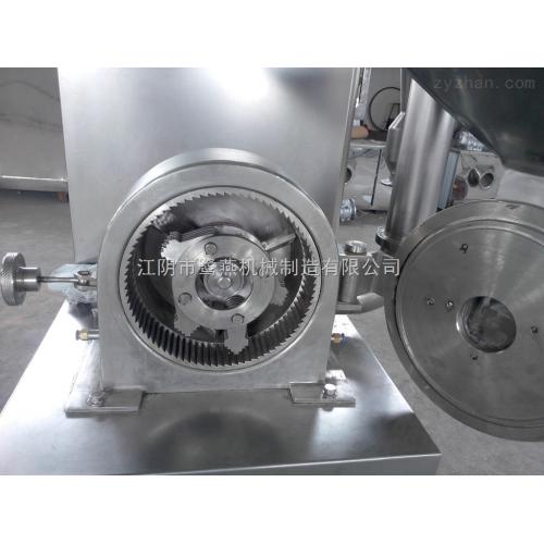 中草药粉碎机由加料斗,分级轮,粉碎刀片,齿圈,粉碎电机,出料口,风叶,集料箱,吸尘箱等部分组成,物料由加料斗进入粉碎室,通过高速旋转的刀片进行粉碎,调节分级轮与分级盘的距离来达到所要求的物料细度,高速旋转的风叶把达到要求的物料从粉碎室引到集料箱布袋中,没有达到要求的物料继续在粉碎室中粉碎,集料箱布袋产生的粉尘由吸尘箱收集,该机组按“GMP”标准设计,结构简单,操作清理方便,噪音小,产量高,机器采用不锈钢材料制作,粉碎过程中无粉尘飞扬。 技术参数