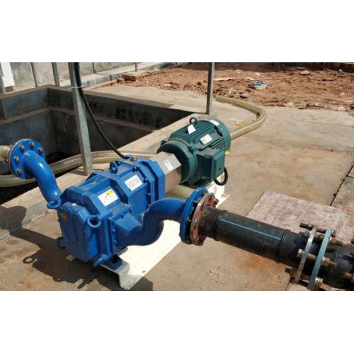 排污泵也属于容积泵的一种,又可以叫凸轮转子泵,其工作原理是:由在同步齿轮驱动下不断旋转的两个螺旋形凸轮转子,将介质从泵的进口推送到泵的出口,从而完成输送。由于转子与泵体之间具有密封性,泵的进出口腔室完全隔断,具有真空抽吸能力,因此泵的自吸能力好。因采用两叶、三叶、多叶螺旋转子,泵在旋转一周内每个时刻的瞬时设计流量都是恒定的,几乎没有脉动和扰动。