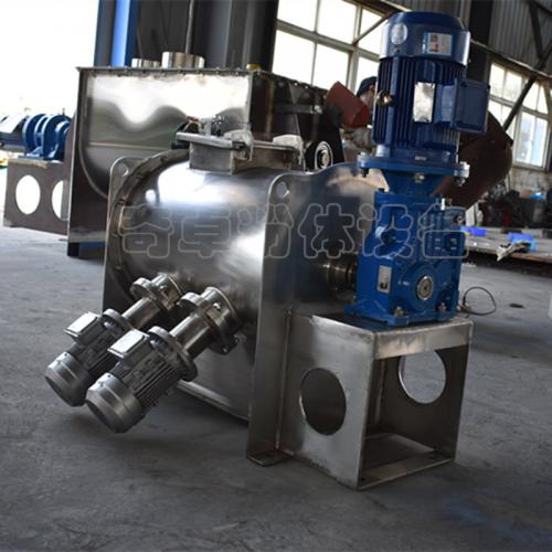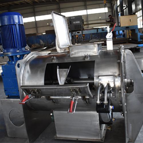 产品介绍:犁刀式混合机由筒体、旋转主轴、犁刀组、飞刀组、支撑件、传动件、喷头、夹套等构成是常见的粉体混合设备。