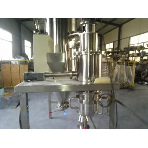 压缩空气经喷嘴加速成超音速气流后射入粉碎区,使物料呈流态化(气流膨胀呈流态化床悬浮沸腾而互相碰撞),因此每一个颗粒具有相同的运动状态。在粉碎区,被加速的颗粒在各喷嘴交汇点相互对撞粉碎,粉碎后的物料被上升气流输送至分级区,由高速旋转的分级轮筛选出达到粒度细粉,未达到粒度要求的粗粉返回粉碎区继续粉碎。合格细粉随气流进入旋风捕集器得到收集,含尘气体经收尘器过滤净化后排入大气。