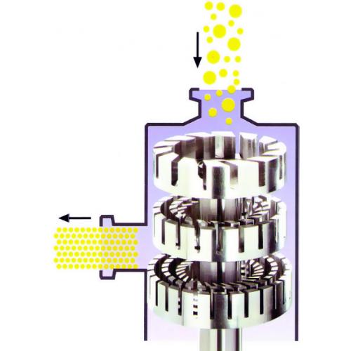 三级高剪切分散机器,主要用于微乳液及超细悬乳液的生产。由于工作腔体内三组分散头(定子+转子)同时工作,乳液经过高剪切后,液滴更细腻,粒径分布更窄,因而生成的混合液稳定性更好。三组分散头均易于更换,适合不同工艺应用。该系列中不同型号的机器都有相同的线速度和剪切率,非常易于扩大规模化生产。也符合CIP/SIP清洁标准,适合食品及医药生产。