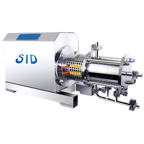 管线式高剪切分散乳化机是用于连续生产或循环处理精细物料的高性能设备,在狭窄空间的腔体内,装有1-3组对偶咬合的多层定、转子,转子在高速旋转时,产生强劲的轴向吸力将物料吸入腔体并开始快速处理。