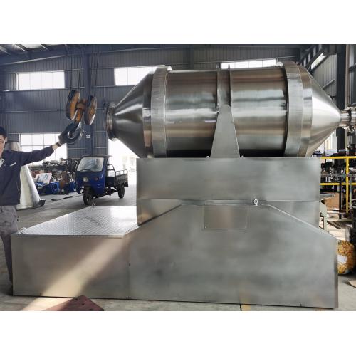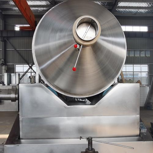 2、本机混合筒体为旋转摆动,物料无离心力作用,无比重偏析及分层、积聚现象,各组分可有悬殊的重量比,混合率可达80%以上(根据混合时间、物料比重拟定),是目前各种混合机中较理想的产品,混合时间短、效率高、混合时无升温现象。