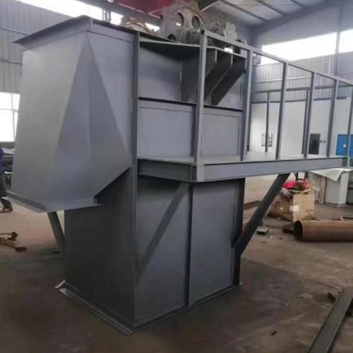 TH系列斗式提升机工作原理:TH系列斗式提升机适用于输送粉状、粒状及小块状的无磨琢及磨琢性小的物料。TH型是一种圆环链斗式提升机采用混合式或重力卸料,挖取式装料。牵引件用优质合金钢高度圆环链。中部机壳分单、双通道两种形式为机内重锤箱恒力自动张紧。链轮采用可换轮缘组合式结构。使用寿命长,轮缘更换工作简便。下部采用重力自动张紧装置,能保持恒定的张紧力,避免打滑或脱链,同时料斗遇到偶然因素引起的卡壳现象时有一定的容让性,能够有效地保护下部轴等部件。该斗式提升机适用于输送堆积密度小于1.5t/m3易于掏取的粉状、粒状、小块状的底磨琢性物料。如煤、水泥、碎石、砂子、化肥、粮食等。TH型斗式提升机用于各种散状物料的垂直输送。适用于输送粉状、粒状、小块状物料,物料温度在250℃以下。