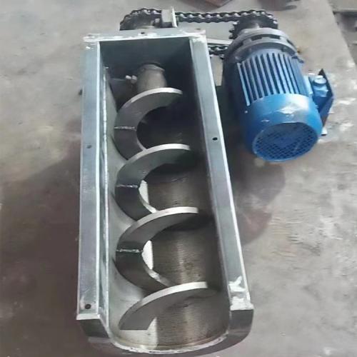 无中心轴干扰,对于输送带状、易缠绕物料有特殊的优越性。无轴螺旋输送机用途: xLS型系列无轴螺旋输送机用于污水处理厂输送中细格栅其栅条净距50mm的除污机栅渣和压滤机泥饼等物料。 环保性能好。采用全封闭输送和易清洗的螺旋表面,可保证环境卫生和所送物料不受污染、不泄漏。 扭距大、能耗低。由于螺旋无轴,物料不易堵塞,排料口不堵塞,因而可以较低速度运转,平稳传动,降低能耗。扭距可达4000N/m。输送量大。输送量是相同直径传统有轴螺旋输送机的1.5倍。输送距离长。单机输送长度可达60米。并可根据用户需要,采用多级串联式安装,超长距离输送物料。能机动工作,一机多用。既可下方出料,又可端头出料。采用特制衬板,该机可在高温下工作。结构紧凑,节省空间,外型美观,操作简便,经济耐用。