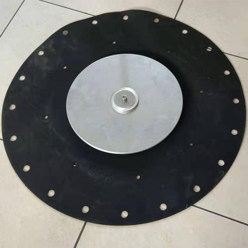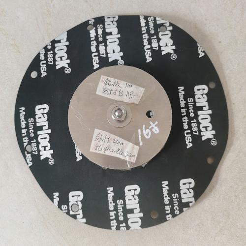 旋转式喷吹脉冲阀大膜片是一个由安装有用来封堵压缩空气管道或者说封堵阀的出气口的铆头,放气卸荷孔和四周有固定支撑用的螺栓孔的一整张丁晴橡胶加氯丁橡胶合成的膜片,更加耐磨,是旋转喷吹脉冲阀中的关键控制部件。旋转式喷吹脉冲阀膜片用的较多的是8寸、12寸、14寸三种型号,此种膜片其中一面印有字样;因此膜片较大,所用钢件也较大较重;