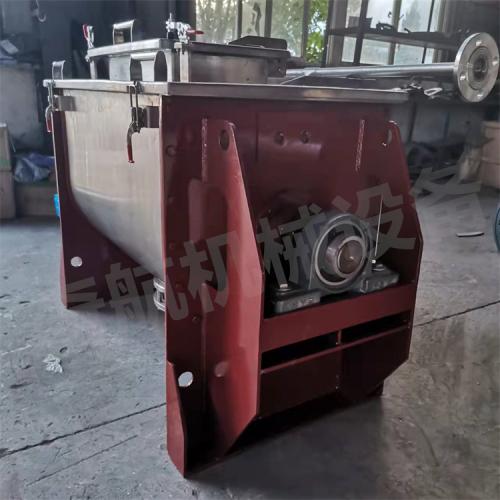 卧式螺带混合机一般用于粘性或有凝聚性的粉粒体的混合以及粉粒体中添加液体及糊状物料的混合,同时由于粘性物料清洗困难的特点,适用于产量大、不经常更换品种的场合混合。