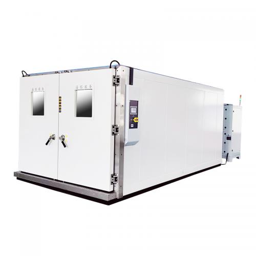 步入式老化试验箱的内部空间大,可供人员进入,便于放置和调整样品;外层为钢板,内层为不锈钢,中间填充保温材料,确保温度稳定;配备大尺寸密封门,带观察窗,方便观察内部情况。