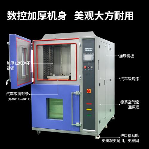 冷热冲击试验箱制冷循环均采用逆卡若循环,该循环由两个等温过程和两个绝热过程组成。其过程如下:制冷剂经压缩机绝热压缩到较高的压力,消耗了功使排气温度升高,之后制冷剂经冷凝器等温地和四周介质进行热交换,将热量传给四周介质。后制冷剂经阀绝热膨胀做功,这时制冷剂温度降低。***后制冷剂通过蒸发器等温地从温度较高的物体吸热,使被冷却物体温度降低。此循环周而复始从而达到降温之目的,目前有两厢式和三箱式可供选择!