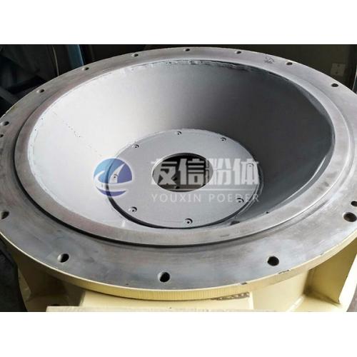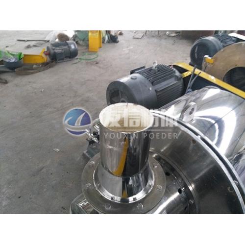 超细磨主机 主轴及各层转盘旋转,转盘通过柱销带动几十个环辊在磨环滚道内滚动并旋转。,螺旋给料机将物料均匀的送到上转盘的中部,物料在离心力的作用下散向圆周边,并落入磨环的滚道内被环辊冲压、滚碾、研磨而粉碎,物料经一层粉碎后又落入二层及三层,高压离心风机的抽吸作用将外部空气吸入机内,并将经过第三层粉碎后的粗粉带入整形机内 进行整形。达到球形度的物料在负压的抽动中带至旋风收集器进行收集,不合格的物料将回到整形机内进行二次整形,而带有少量细粉尘的气流则经过脉冲除尘器净化后通过风机及消声器排出,系统全程负压设计生产室无灰尘。